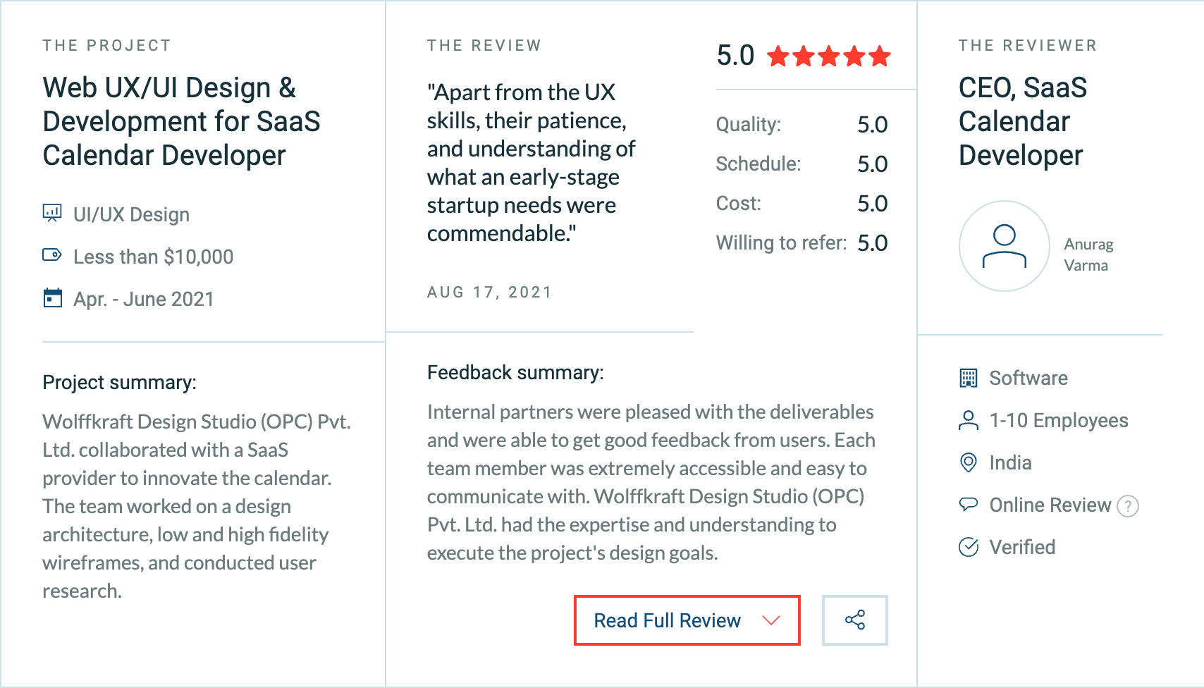 Wolffkraft Design Studio Gains Another 5-Star Feedback on B2B Site Clutch